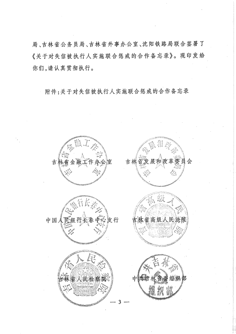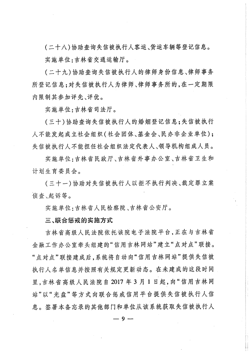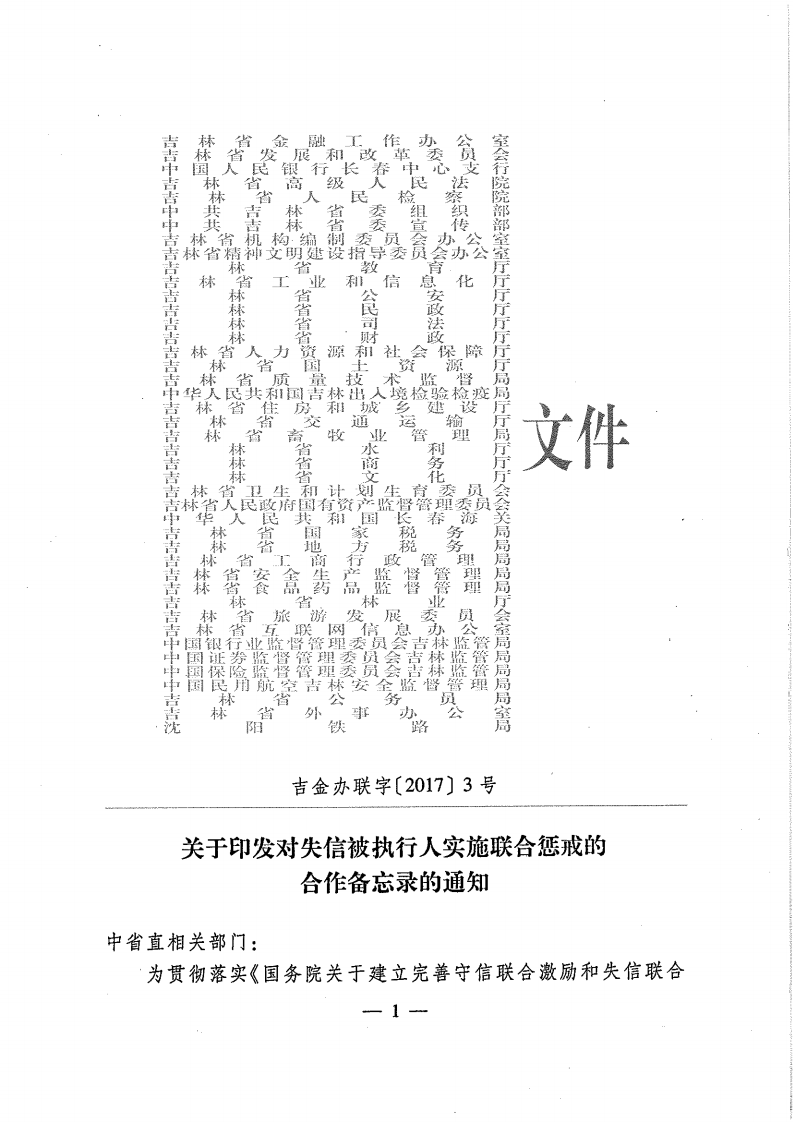 关于印发对失信被执行人实施联合惩戒的合作备忘录的通知