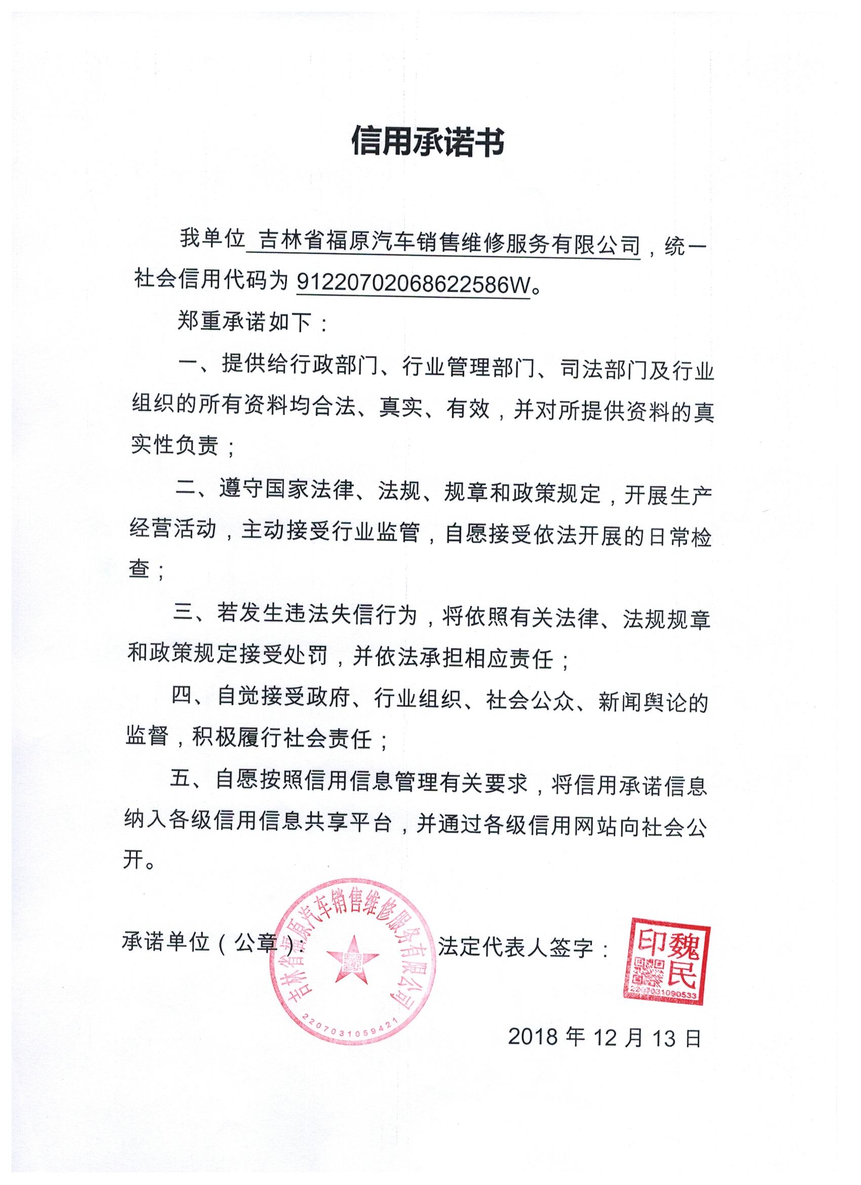 吉林省福原汽车销售维修服务有限公司