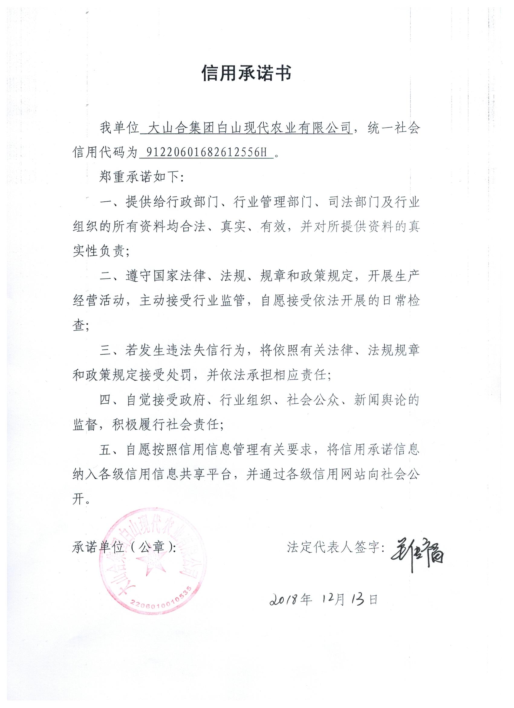 大山合集团白山现代农业有限公司